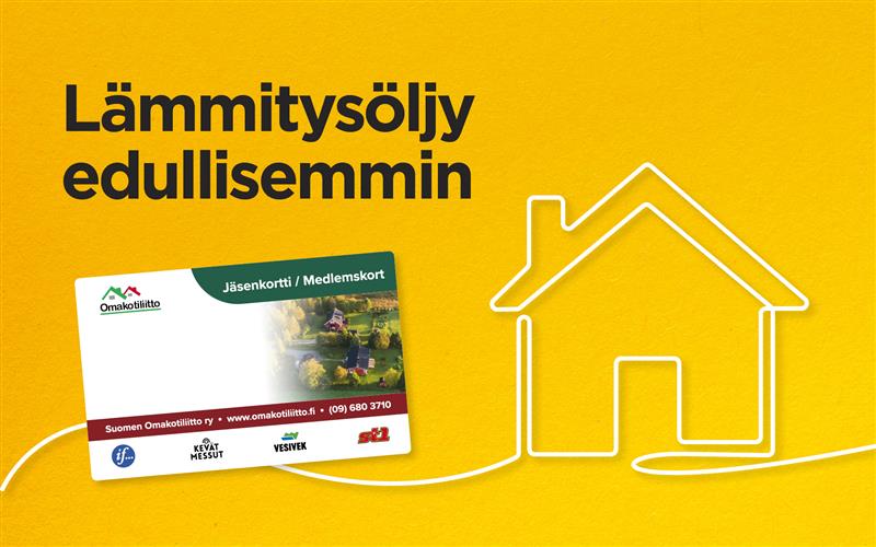St1 Lämmitysöljy Edun on neuvotellut: Suomen Omakotiliitto Ry Tilaa St1:n lämmitysöljyä numerosta 0800 131 031 (arkisin klo 7–17 ja la klo 9–15) niin saat myös alennusta – heti, kun maksat tilauksen yhdessä erässä. Sinua saattaisi kiinnostaa Verisure – Suomen suosituin kotihälytin Jopa 250 € lisälaite-etu hälytysjärjestelmän hankkijalle ovella®-pyöräparkit ja säilytysratkaisut Jäsenille 25 % alennusta verkkokauppaostoksista